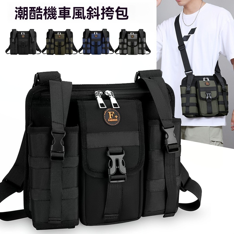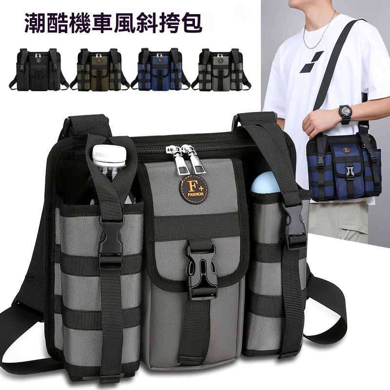 潮酷機車風斜挎包 多層分倉收納 側邊輕鬆裝水壺 外出攜帶方便又有型 機能與風格兼備